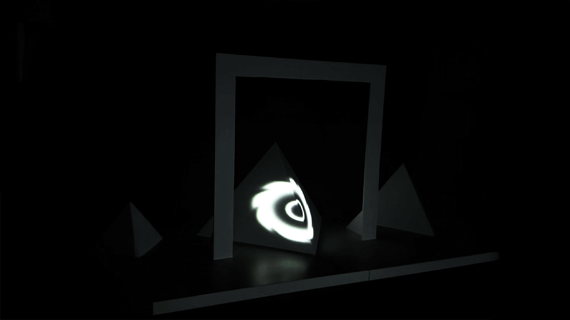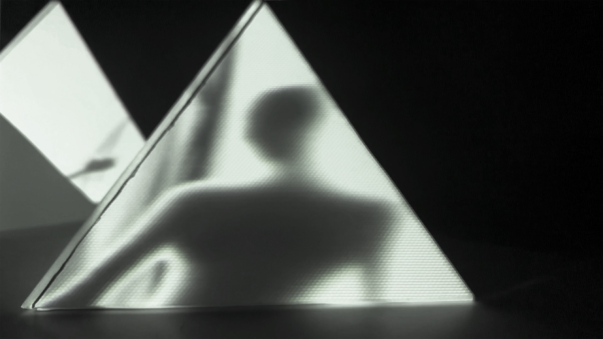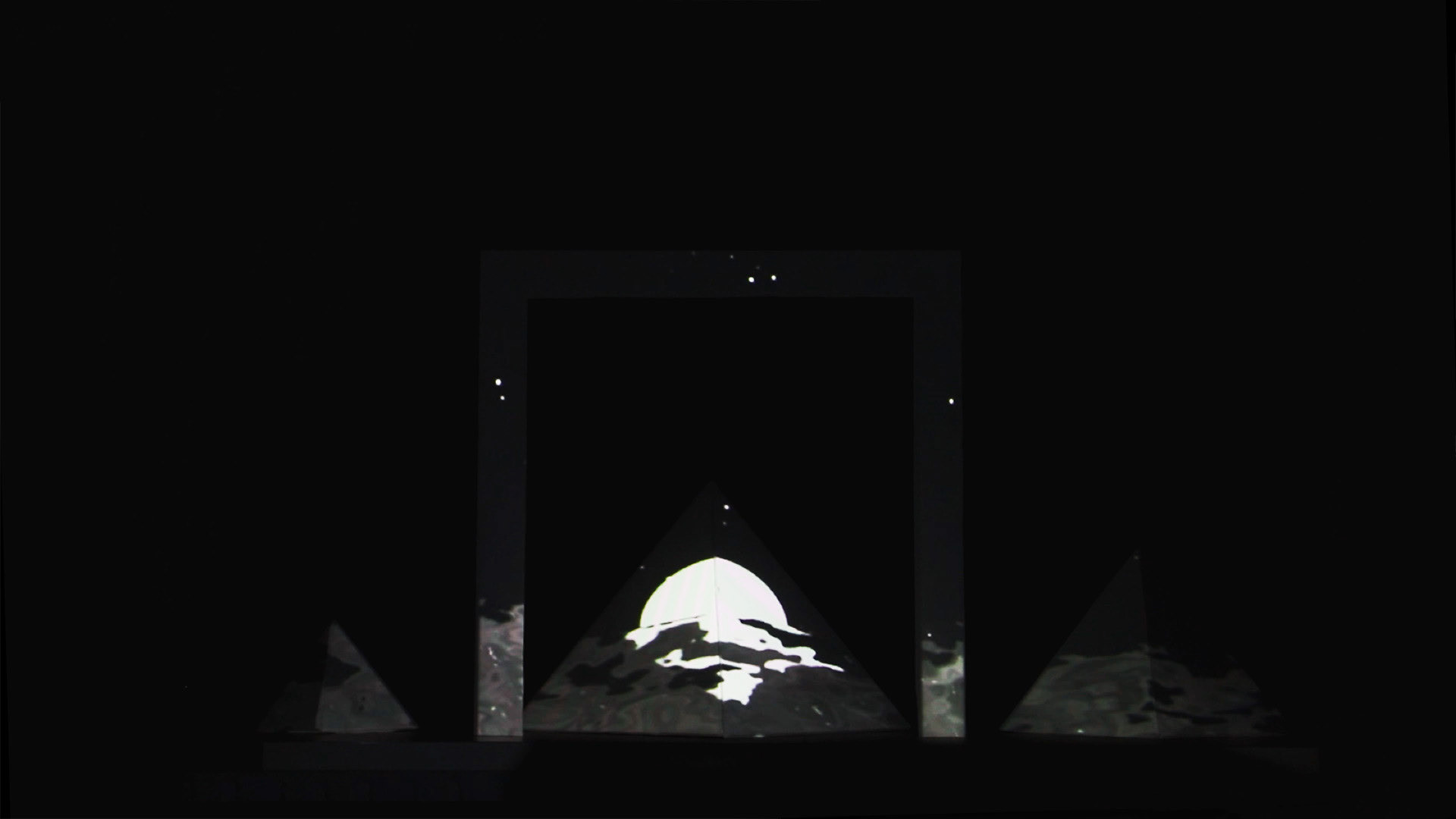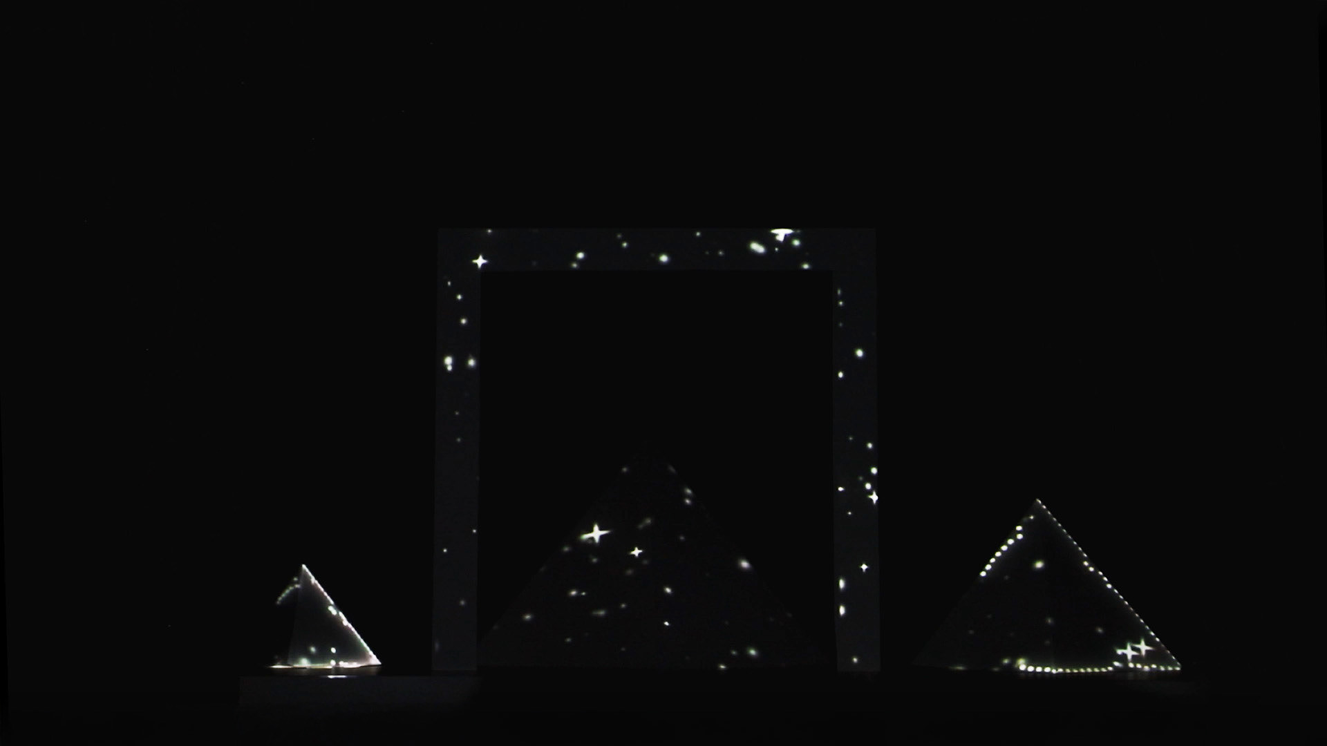 Projection d'une animation sur une structure en pyramides.